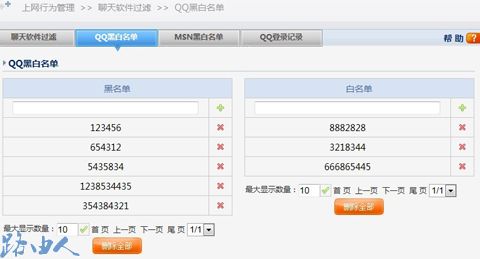 黑名单:未阻断的情况下,限制登陆的QQ号码,白名单:阻断的情况下,允许登陆的QQ号码。